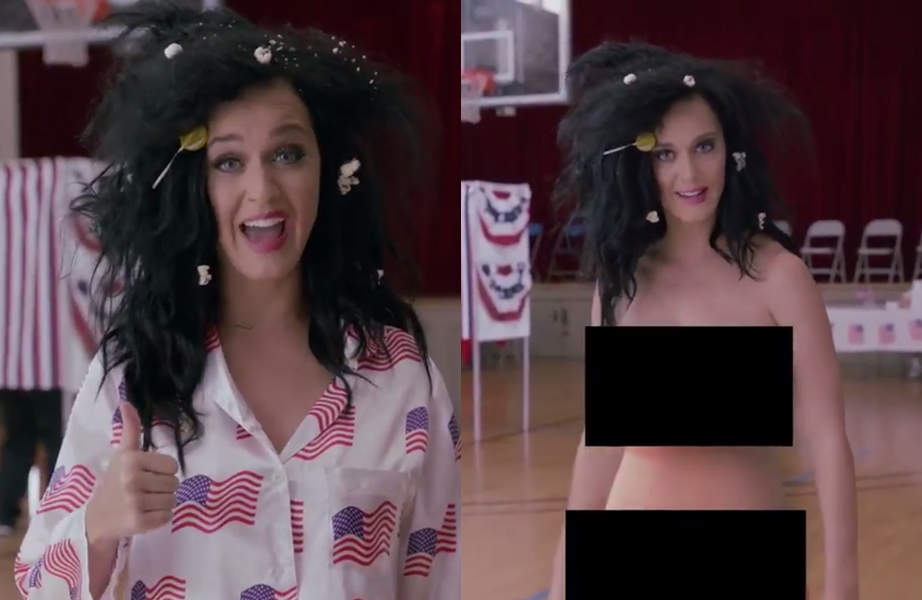 Após Mark Ruffalo prometer ficar pelado em seu próximo filme caso o candidato à presidência Donald Trump perca, foi a vez de Katy Perry tirar a roupa ao pedir que a população se registre para votar no dia 8 de novembro. As informações são do site The Lad Bible .