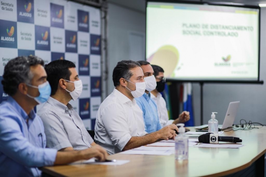 O aumento dos números da pandemia da Covid-19 em Alagoas obrigou o Governo do Estado a regredir as fases do Plano de Distanciamento Social Controlado. O anúncio foi feito na tarde deste domingo (7) pelo governador Renan Filho, acompanhado dos secretários da Saúde, Alexandre Ayres; do Planejamento, Gestão e Patrimônio, Fabrício Marques; do Desenvolvimento Econômico e Turismo, Rafael Brito; e pelo presidente da Associação dos Municípios Alagoanos (AMA), Hugo Wanderley. A principal mudança é o retorno à Fase Vermelha, dentro do Plano de Distanciamento Social Controlado, do Agreste e do Sertão, que compõem a 7ª, 8ª, 9ª e 10ª regiões sanitárias; e à Fase Laranja do restante do estado, incluindo a capital Maceió.