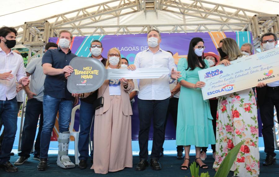 Nesta terça-feira (24), além do acesso ao povoado da Mata Verde, o governador entregou um ônibus escolar pelo programa Meu Transporte Novo, repassou à Escola Estadual Odete Bonfim o valor de R$ 120 mil do programa Rumo às Aulas para a retomada do ensino presencial e garantiu a construção de uma creche do Cria.