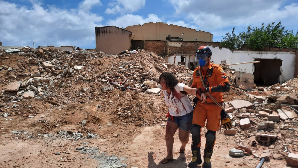 O simulado ocorreu na escombros dos edifícios Antares e Olímpia, na Rua Jornalista Augusto Vaz Filho. Eles foram demolidos emergencialmente no mês outubro por risco iminente de desabamento.