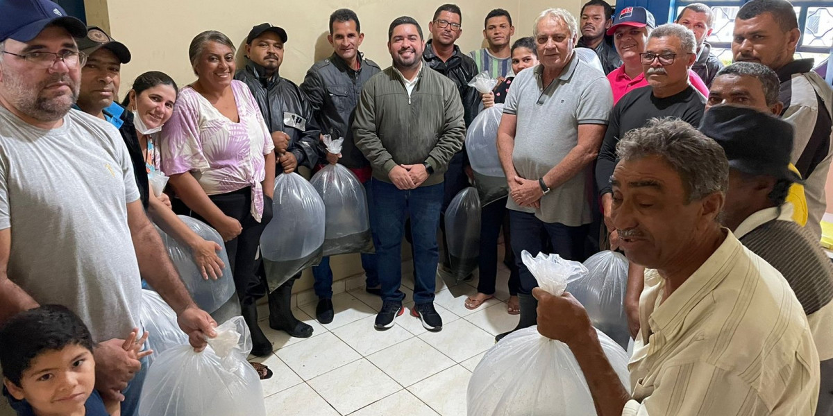 “Foram atendidos produtores de diversas áreas rurais, onde a gente sempre faz esse trabalho de incentivar e de estimular a piscicultura”, destacou o prefeito, ao lado do secretário municipal de Agricultura e Meio Ambiente, Israel Moura.
