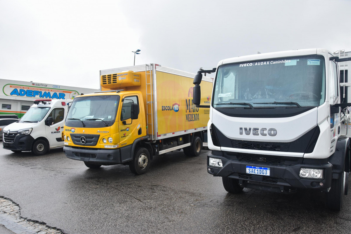 Governador entregou um caminhão compactador, um caminhão merenda e uma ambulância. Foto: Marco Antônio
