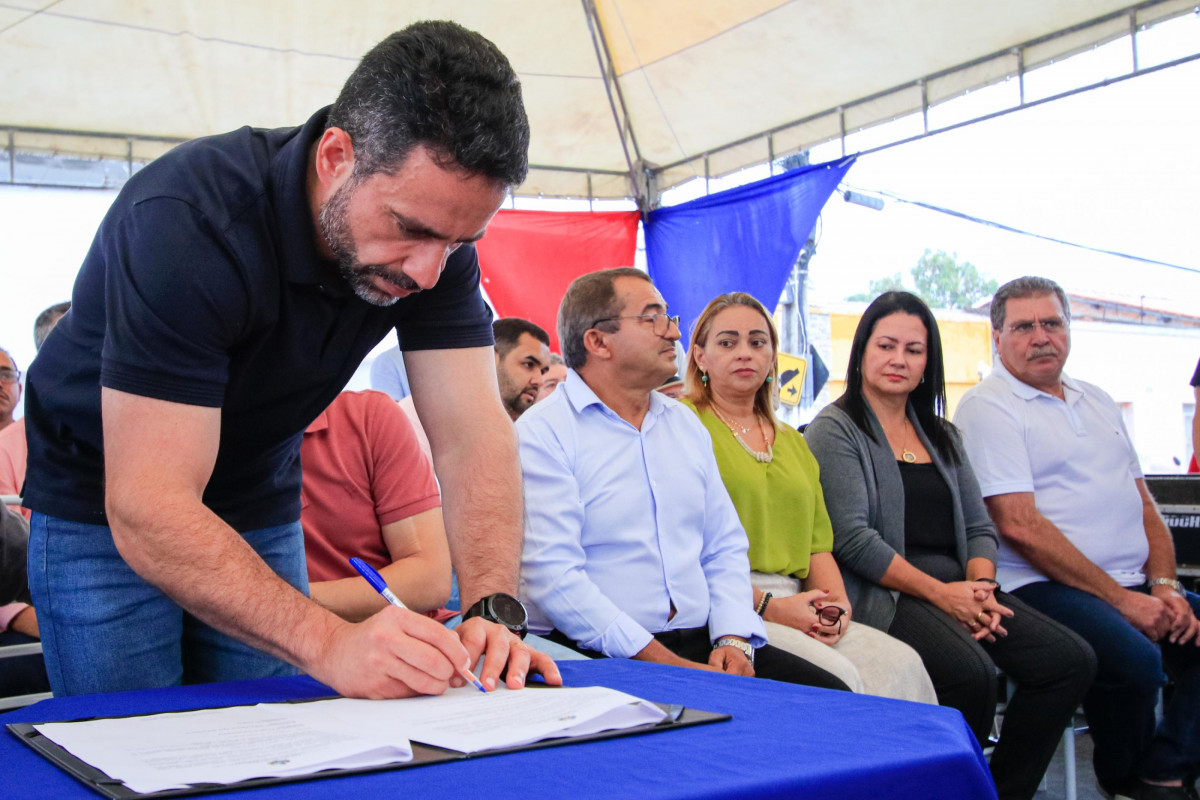 Governador Paulo Dantas assinou convênios para obras de construção de uma unidade de ensino, reforma do Estádio Municipal e construção de dois poços. Foto: Pei Fon