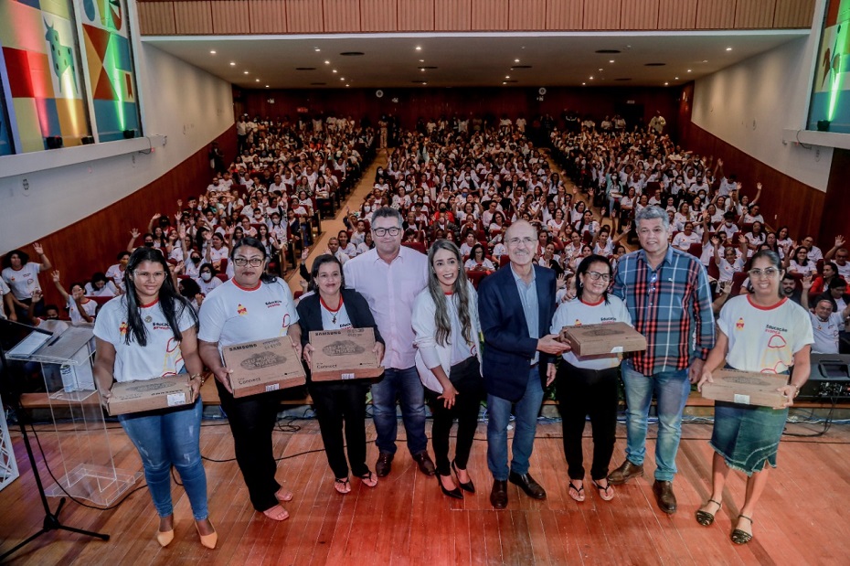 A solenidade realizada no Centro de Convenções e Eventos Zeca Peixoto – obra que revitalizou o Cine São Francisco – foi aberta com a participação virtual do representante das empresas Google for Education, Fábio Nakano; e Ensinar Tecnologia, Cláudio Castro.