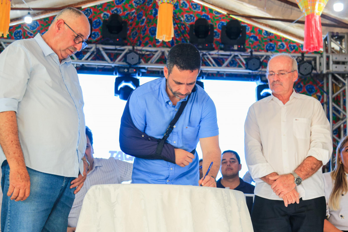 Ao lado do prefeito de Taquarana, Geraldo Cícero da Silva, do deputado federal Isnaldo Bulhões, do deputado estadual Galba Novaes, de vereadores, secretários de Estado e lideranças locais, Paulo Dantas assinou a ordem de serviço para pavimentação de 6 km de vias do município, por meio do Programa Pró-Estrada, da Secretaria de Estado de Transporte e Desenvolvimento (Setrand), com investimentos de R$ 4 milhões do Tesouro Estadual. Serão pavimentadas mais de 40 ruas, beneficiando os 20 mil moradores da cidade.