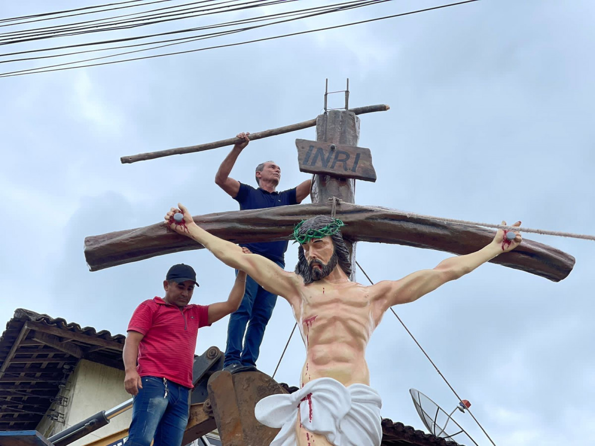 Prefeitura de Anadia instala escultura de Jesus Cristo na cruz com cerca de seis metros de altura
