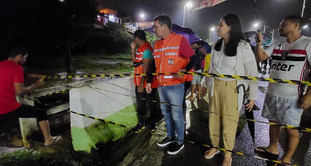 No início da noite desta sexta-feira (1), o prefeito Neno Freitas gravou um vídeo publicado nas redes sociais, onde atualizou a população sobre o monitoramento e as ações que estão sendo realizadas pela gestão. Com a primeira-dama Renata, ele segue dando assistência aos moradores do centro da cidade que já sentem os efeitos das fortes chuvas. O nível do rio que chegou a marcar 2,40m, transbordou em um trecho da orla e atingiu algumas residências e pontos comerciais. Por medida de prevenção, a Defesa Civil interditou alguns pontos – como a passagem pela ponte sobre os Rios Branca e Mundaú.