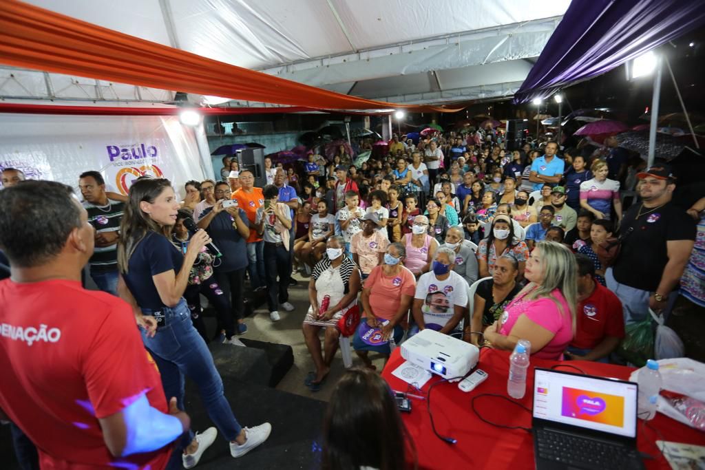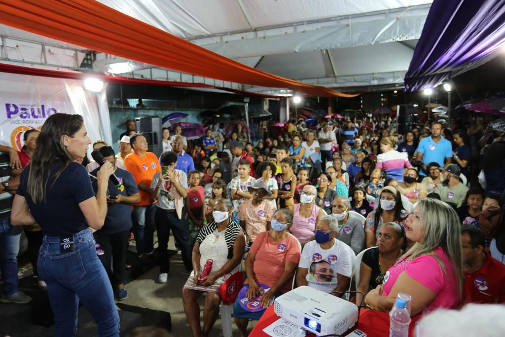 A Grota Piabas, localizada no bairro do Jacintinho, foi a primeira comunidade a receber, na noite desta segunda-feira (22/08), o programa de governo “Fala Alagoas”, tendo no comando a esposa do candidato Paulo Dantas (MDB), a primeira-dama do Estado e prefeita licenciada de Batalha, Marina Dantas. O momento reuniu diversas lideranças comunitárias e nem a chuva intimidou a participação da comunidade.