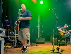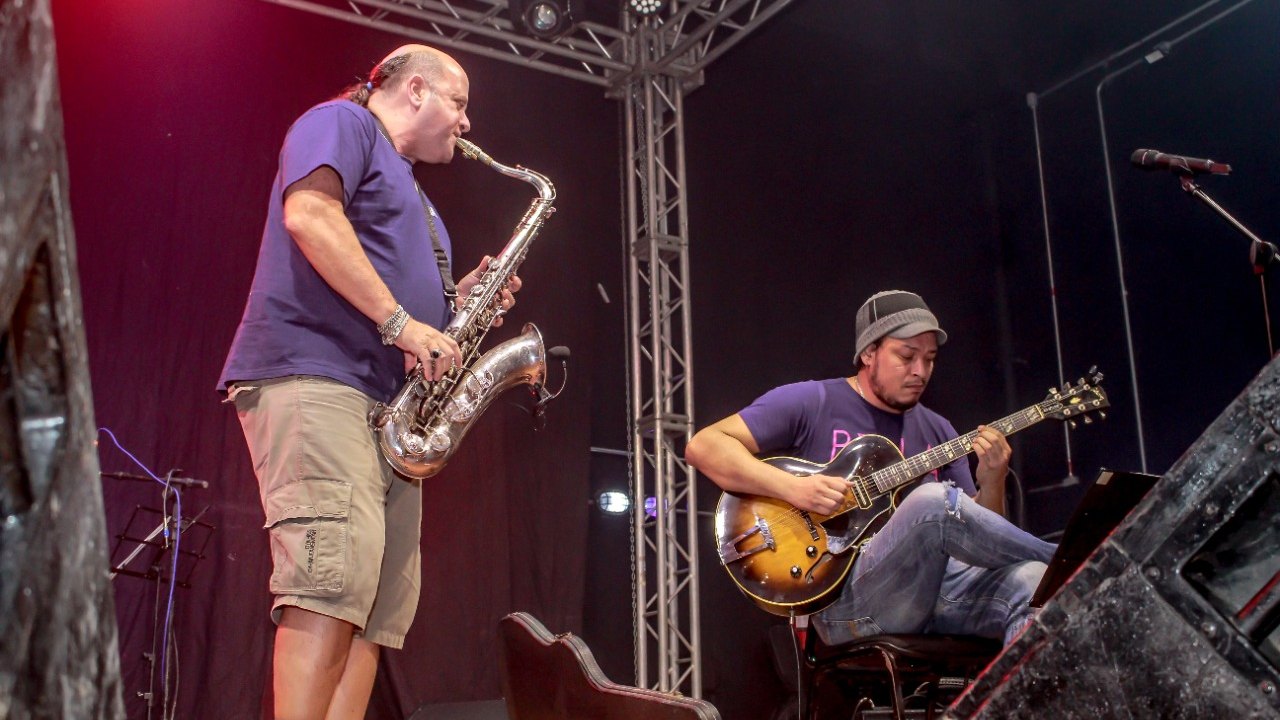 Antes do shows da Mostra, o saxofonista Derico Sciotti e o guitarrista Ricardo Lopes fizeram um concerto aberto que extasiou a plateia e prendeu os olhares. Canções dos artistas Pixinguinha e João Gilberto compuseram o repertório do duo e, a cada música, Derico explicava o contexto e o cenário sociopolítico e a história de sua criação.