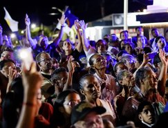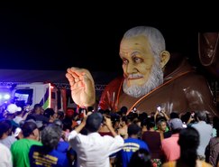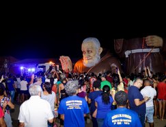 Durante o percurso, na cidade de Belém do São Francisco, em Pernambuco, fiéis se aglomeraram para ver a estátua.