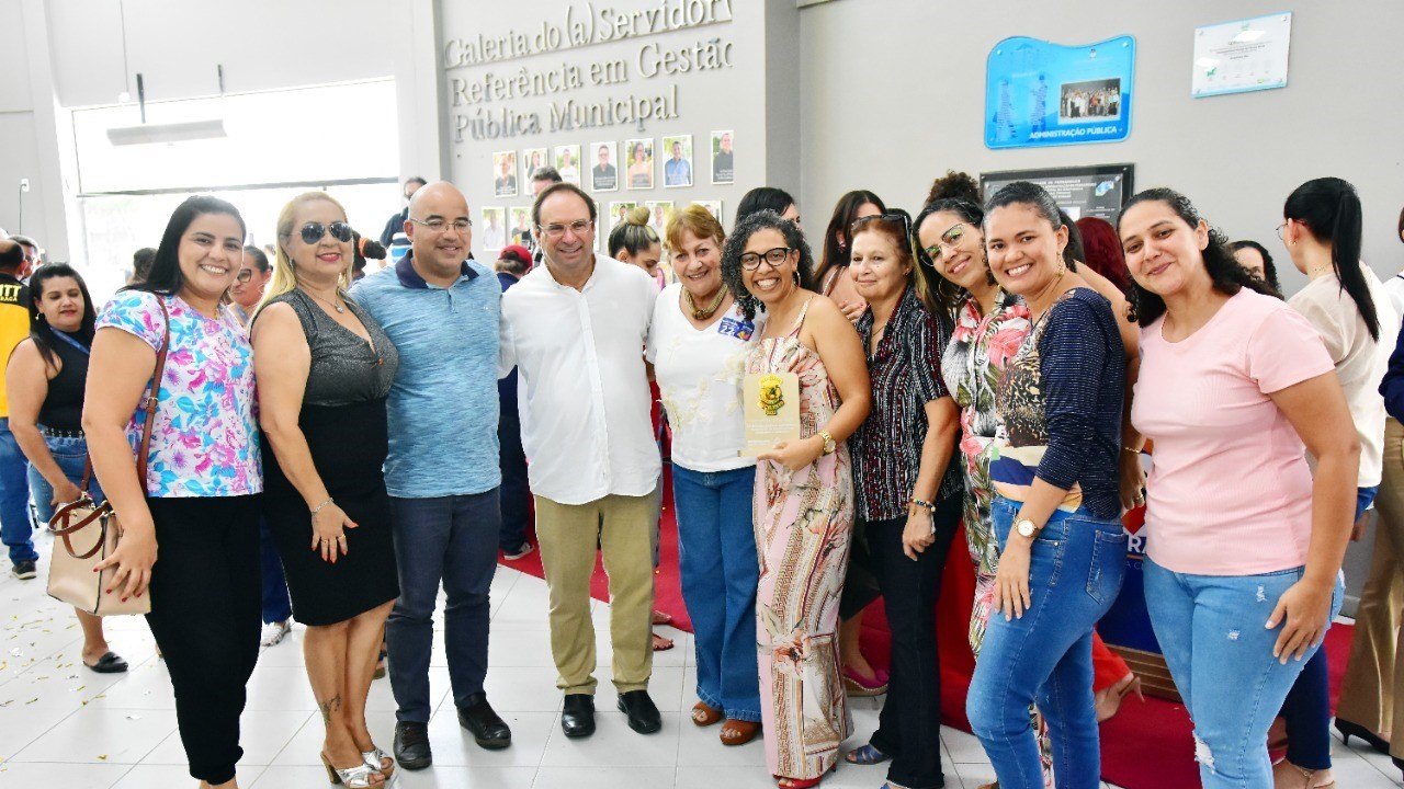 Vinte servidores públicos, sendo um de cada secretaria, receberam um troféu e um presente na solenidade realizada no hall principal do Centro Administrativo Municipal.