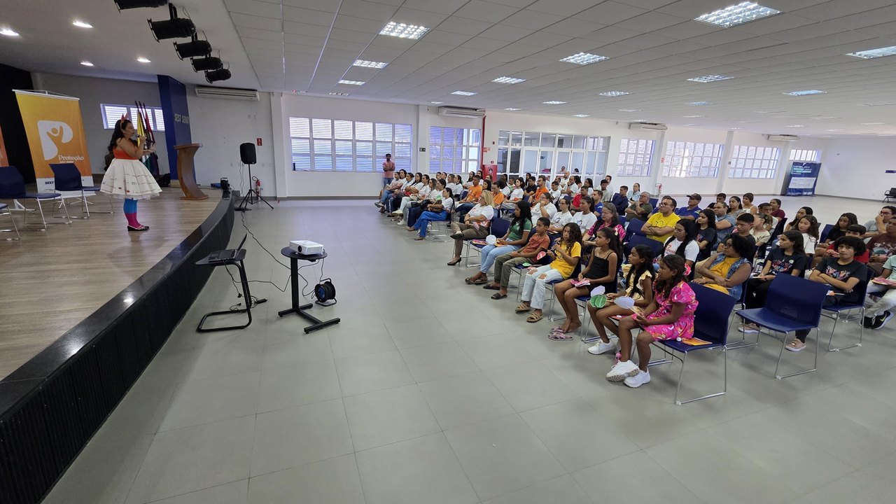 O evento aconteceu no auditório do Serviço Social do Transporte (Sest) durante o período vespertino e contou com a presença de crianças e adolescentes participantes do Serviço de Convivência e Fortalecimento de Vínculos (SCFV), jovens acompanhados pelo Serviço de Medidas Socioeducativas, além de profissionais da rede socioassistencial.