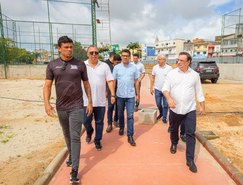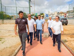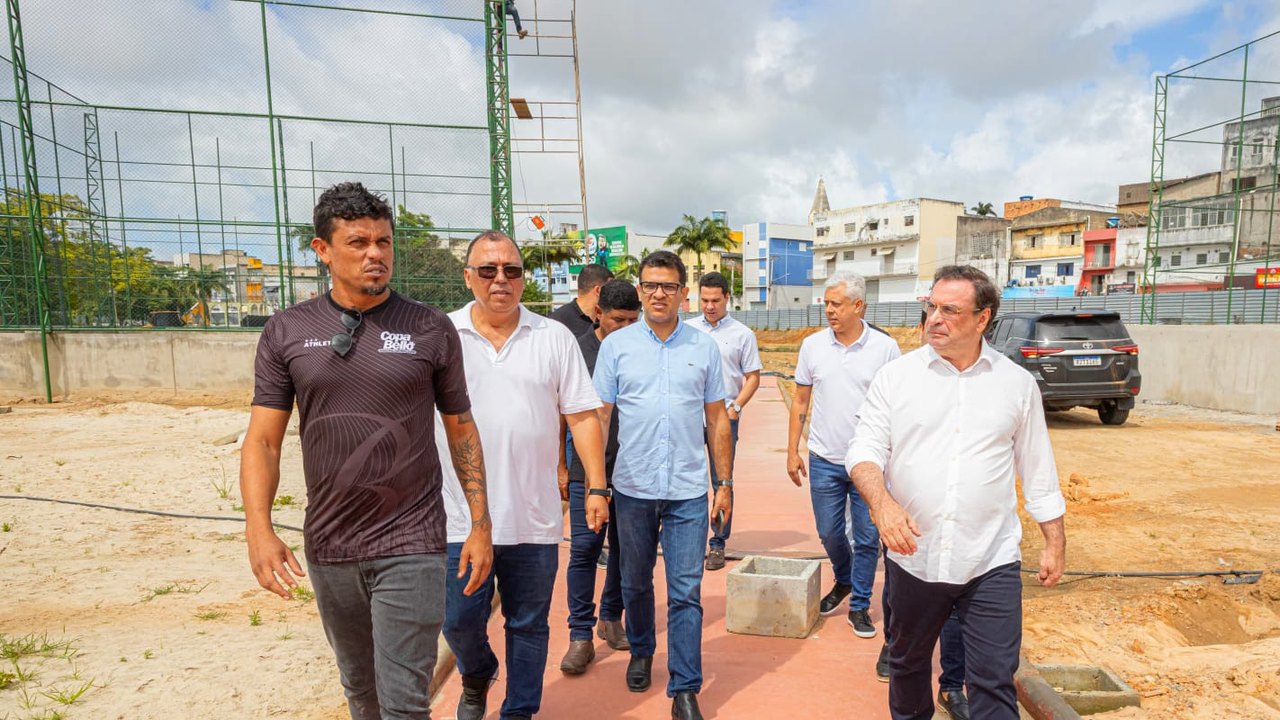 Nesta terça-feira (29), o prefeito Luciano Barbosa acompanhou o avanço das obras, ao lado do atleta Bello Soares; do secretário de Esportes, Fabiano Leão; secretário de Infraestrutura, engenheiro Roany Izidoro; secretário-executivo Vytor Ferro, e dos vereadores Maciel Oliveira e Sérgio do Sindicato.