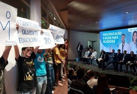 Estudantes da UFAL protestam durante visita do ministro Camilo Santana em Maceió e cobram mais investimentos na educação pública