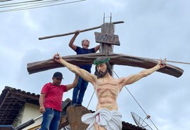 Prefeitura de Anadia instala escultura de Jesus Cristo na cruz com cerca de seis metros de altura