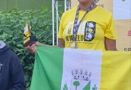 Carminha sobe ao pódio com a bandeira de Arapiraca na Corrida Maio Amarelo em São Paulo