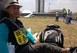 Servidora do TRT de AL continua acorrentada em frente ao Congresso Nacional