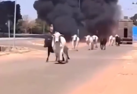 Caminhão carregado de bois e vacas tomba no Anel Rodoviário de BH