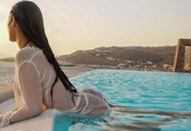 Às vésperas de lançamento de clipe, Simaria posa sexy de biquíni em hotel de luxo na Grécia